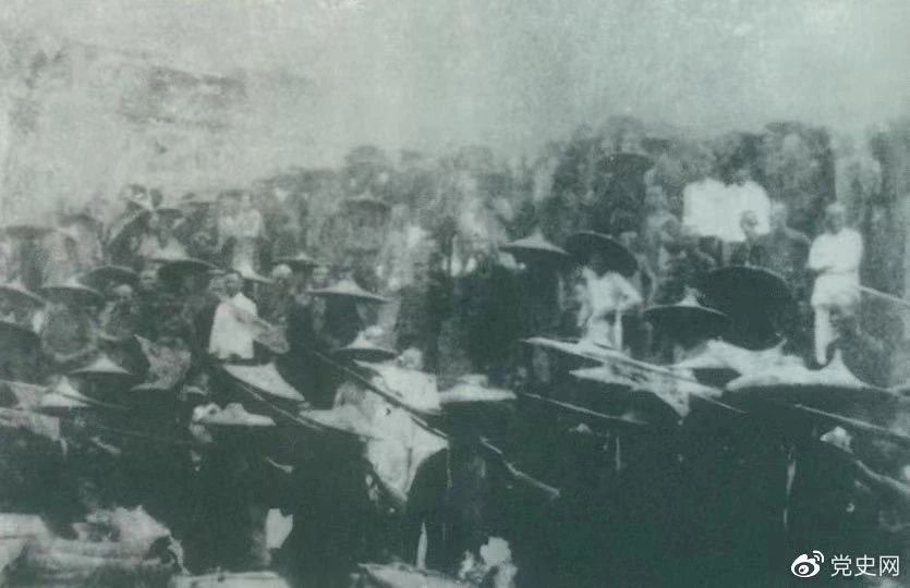 ▲1926年7月9日,國民革命軍開始北伐。兩天后,北伐軍的先頭部隊葉挺獨立團攻占了長沙,然后向武漢進攻。一路上,迅猛發展的農民運動有力地配合了北伐戰爭。在湖南、江西、湖北,農民運動越來越引人注目。這是支援北伐戰爭的農民自衛軍。