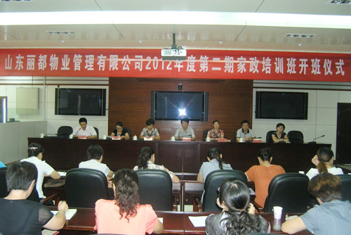 2012年7月25日“山東麗都物業管理有限公司2012年度第二期家政培訓班開班儀式”開班典禮在濱州市財政局會議室隆重舉行。